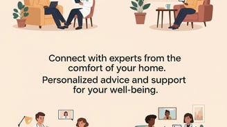 Connect with experts from the comfort of your home. Personalized advice and support for your well-being.